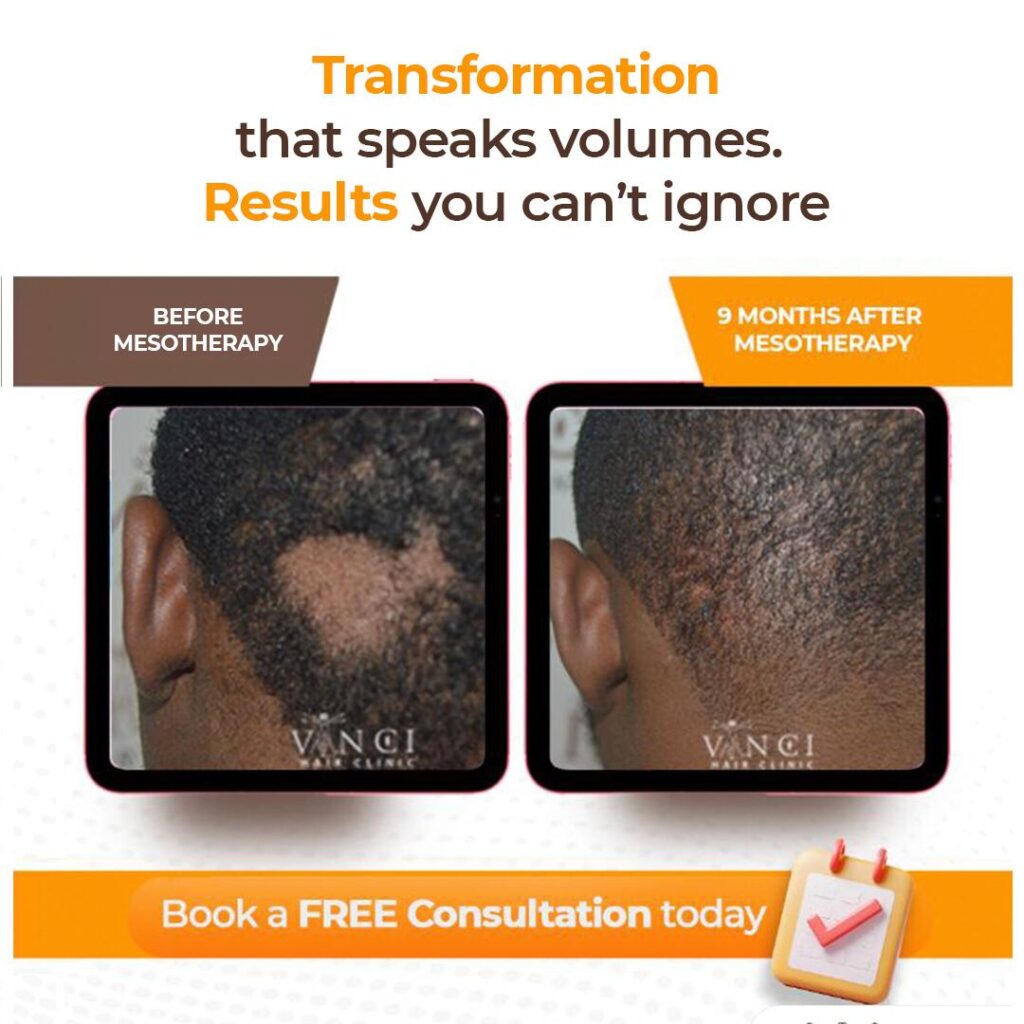 - Check the full cost. Mesotherapy costs may vary by location – whether it’s in Lagos, Abuja, Accra or elsewhere. Compare the prices with what a Hair Transplant costs in Nigeria to help judge the trade-off.